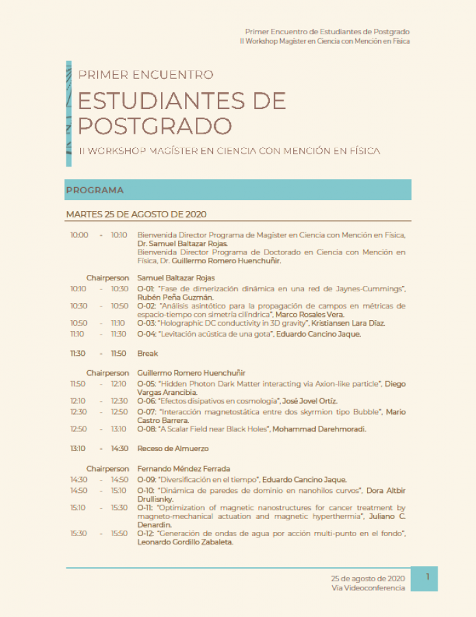 Primer Workshop de Estudiantes de Postgrado, II Workshop Magíster en Ciencia con Mención en Física, que se